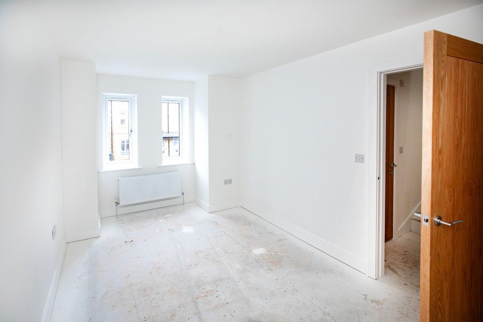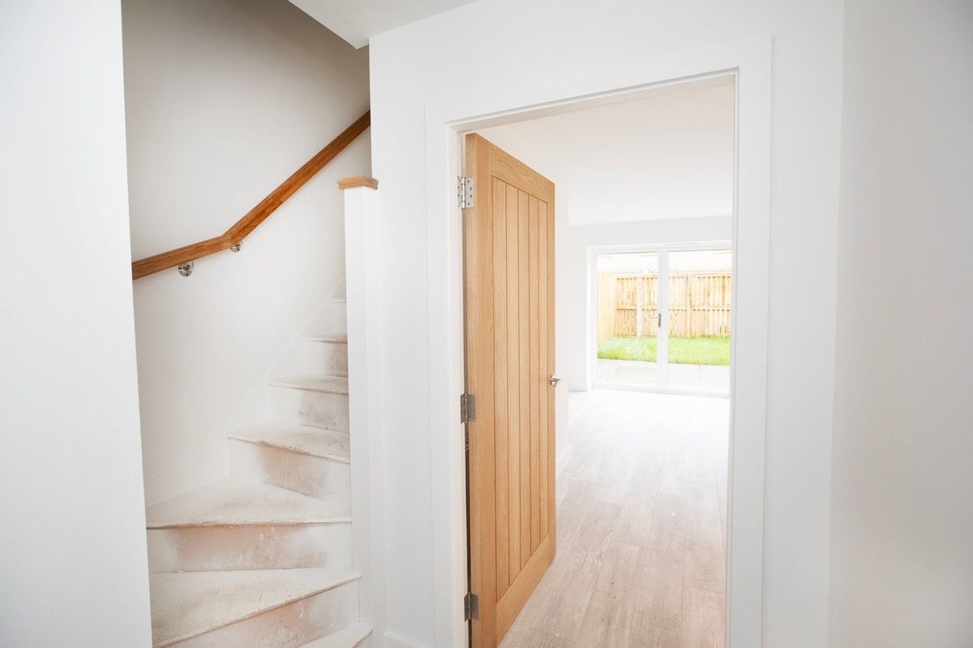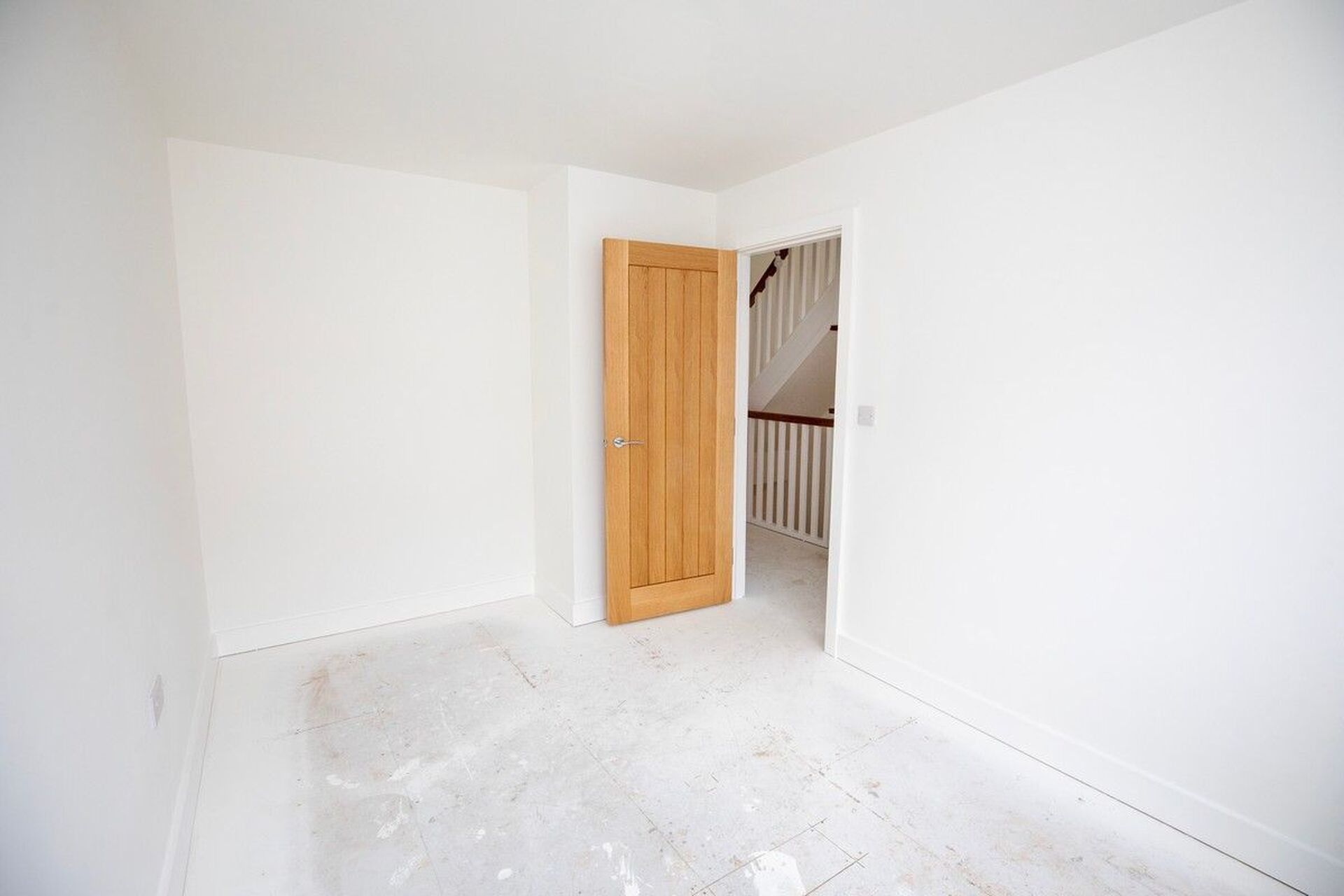 Oak doors with Chrome ironmongery White Satin paint to woodwork Flat white finish to ceilings White emulsion to walls