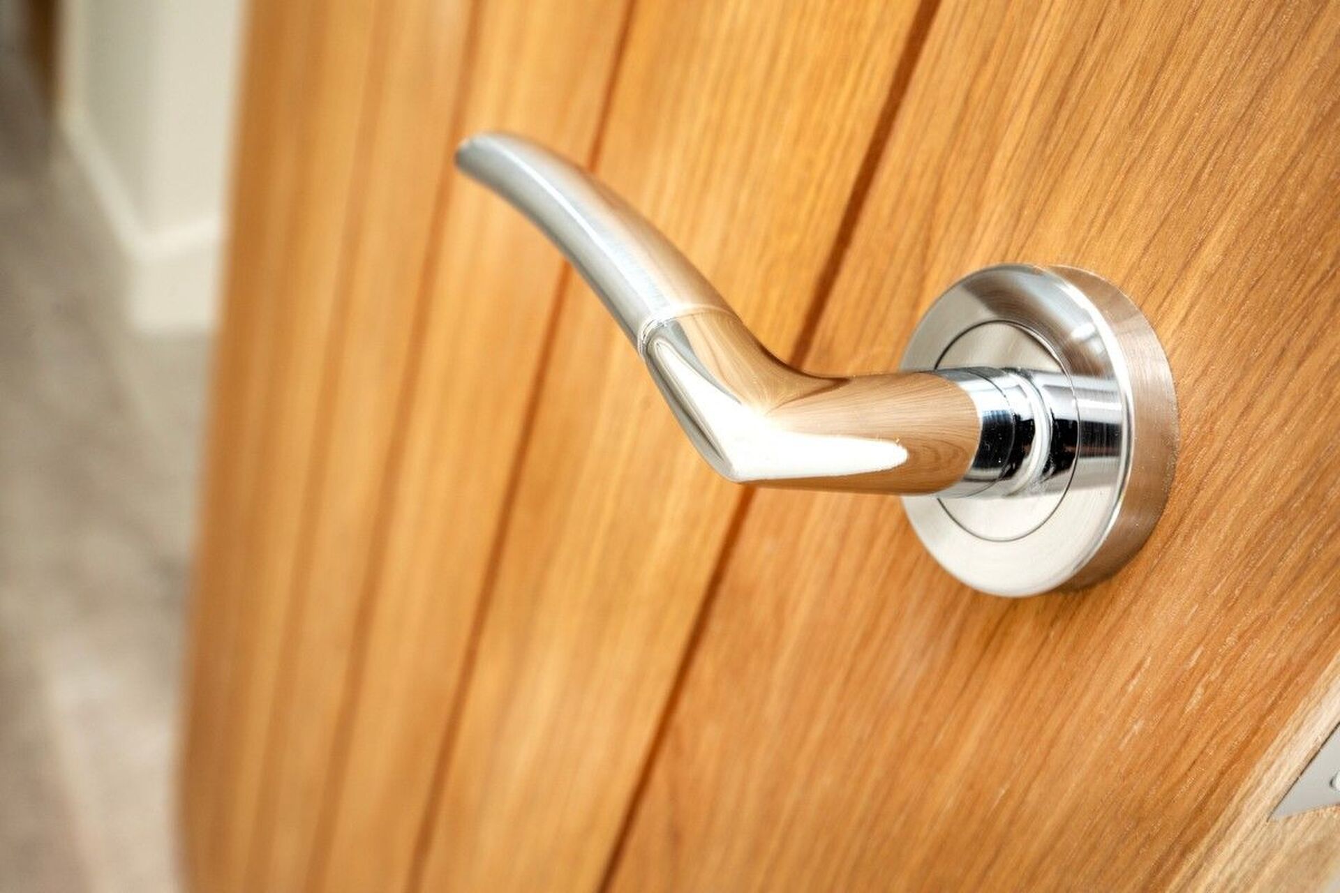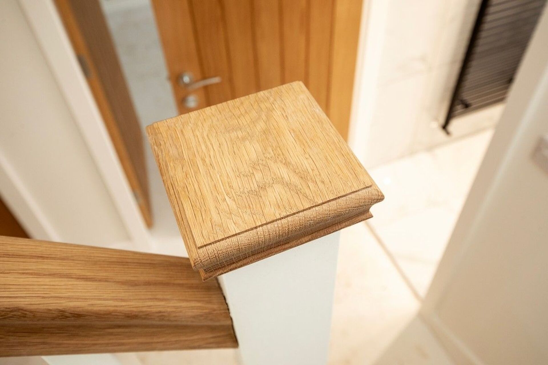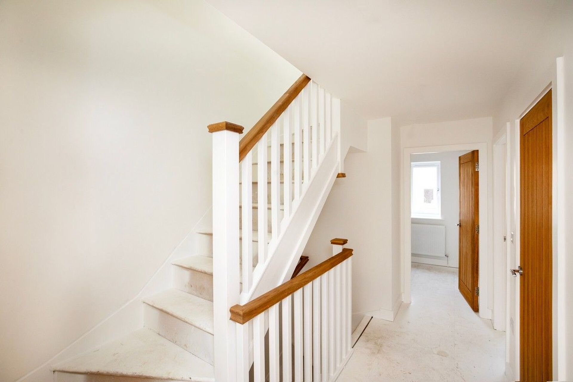 Oak doors with Chrome ironmongery White Satin paint to woodwork Flat white finish to ceilings White emulsion to walls