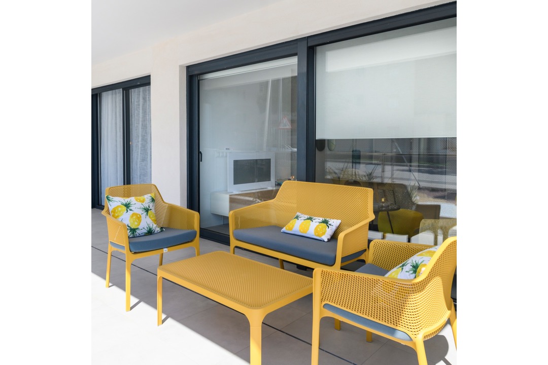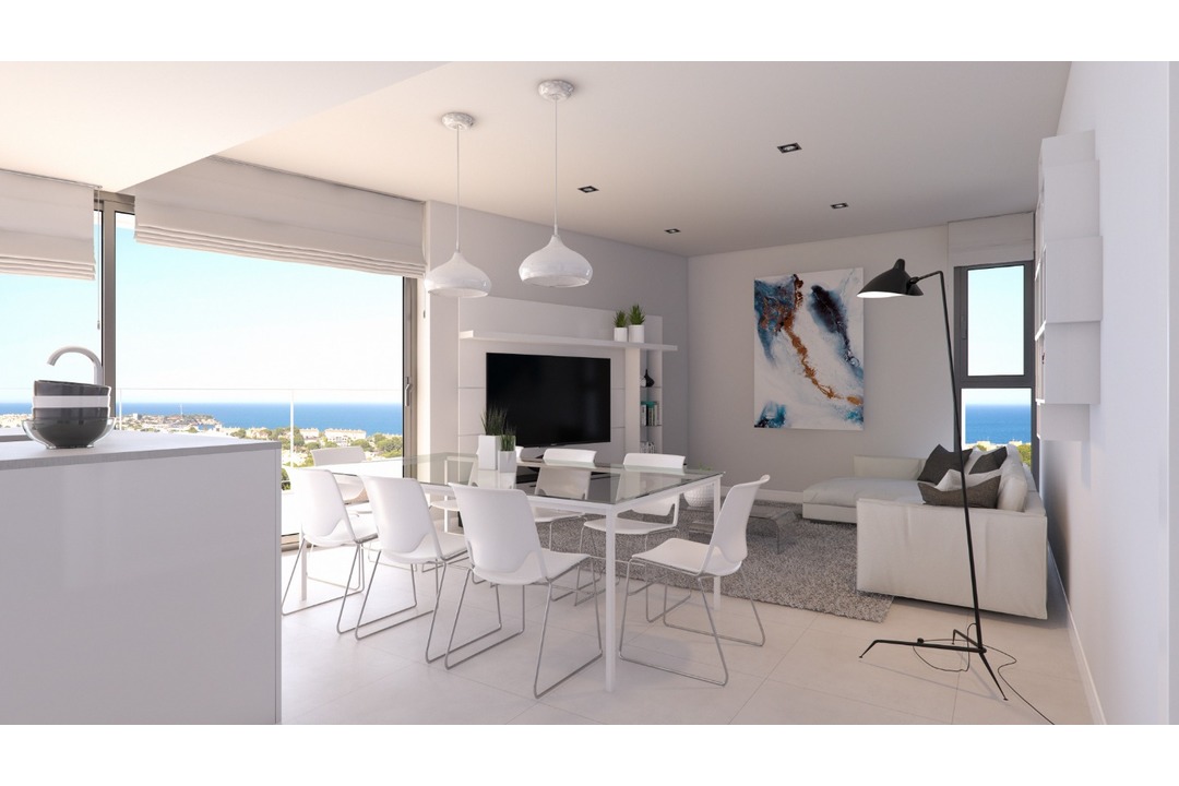 A new development located close to La Glea beach and the Marina in Campoamor. This modern resort consists of 2/3 bedroom apartments ranging from the ground floor with private garden to penthouse with private solarium with sea views. There are beautiful communal gardens with jacuzzi and two swimming pools, indoor heated pool, jacuzzi and gym, elevator to all floors and there is also the option to have secure underground parking and storage. Each apartment is built using the highest quality materials and includes a modern kitchen with fitted appliances, hot/cold vented air conditioning, led lighting and complete bathrooms including shower screens.