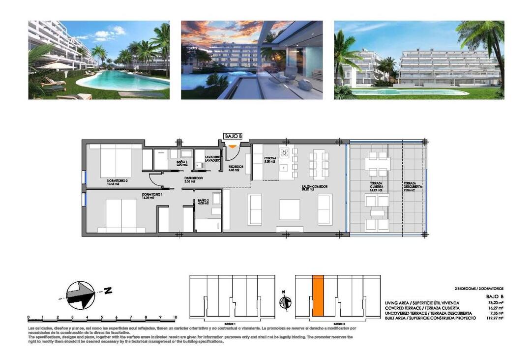 NEW BUILD RESIDENTIAL COMPLEX IN MAR DE CRISTAL New Build modern residential complex of apartments and penthouses located very close to the promenade and the long lovely sandy beaches of Mar de Cristal. You can choose from ground floor apartments with a private garden, mid-floor apartments with a terrace, and penthouses with private solarium. Properties has 2 or 3 bedrooms and 2 bathrooms. The apartments have a modern design, presenting an open plan living area, combining the kitchen, dining area and lounge, into a large space with access to the terrace. The master bedroom has a private bathroom. Built with top quality finishes, fitted wardrobes, pre-installation of ducted A/C, a storage room, and a underground parking space. All the daily necessities, like supermarkets, bars and restaurants, are available all year round and are located close to the complex. Mar de Cristal has beautiful sandy beaches, a tennis centre, marina, supermarkets, bars and restaurants. The Calblanque national park where you will find unspoilt long white sandy beaches, as well as the famous La Manga Club and the bustling town of Los Belones are all within a 5 min drive from the village. Murcia airport is 25 mins and Alicante 1 hour drive. You can also visit the historic cities of Cartagena and Murcia.