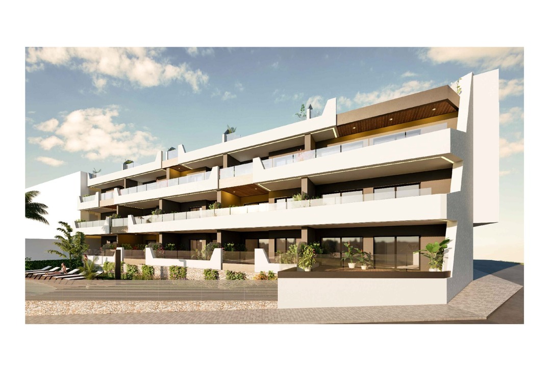 This new modern development is located in the quiet area of Benijofar and is made up of 15 apartments, 5 per floor, with 2 or 3 bedrooms and 2 bathrooms. The penthouses have a large private solarium from 75.00 square meters with a toilet and pre-installation for a kitchen, where you can enjoy the beautiful summer sunsets. In addition, there is a large green area with a swimming pool for all owners. The parking and storage are an extra 10.000 if required.
