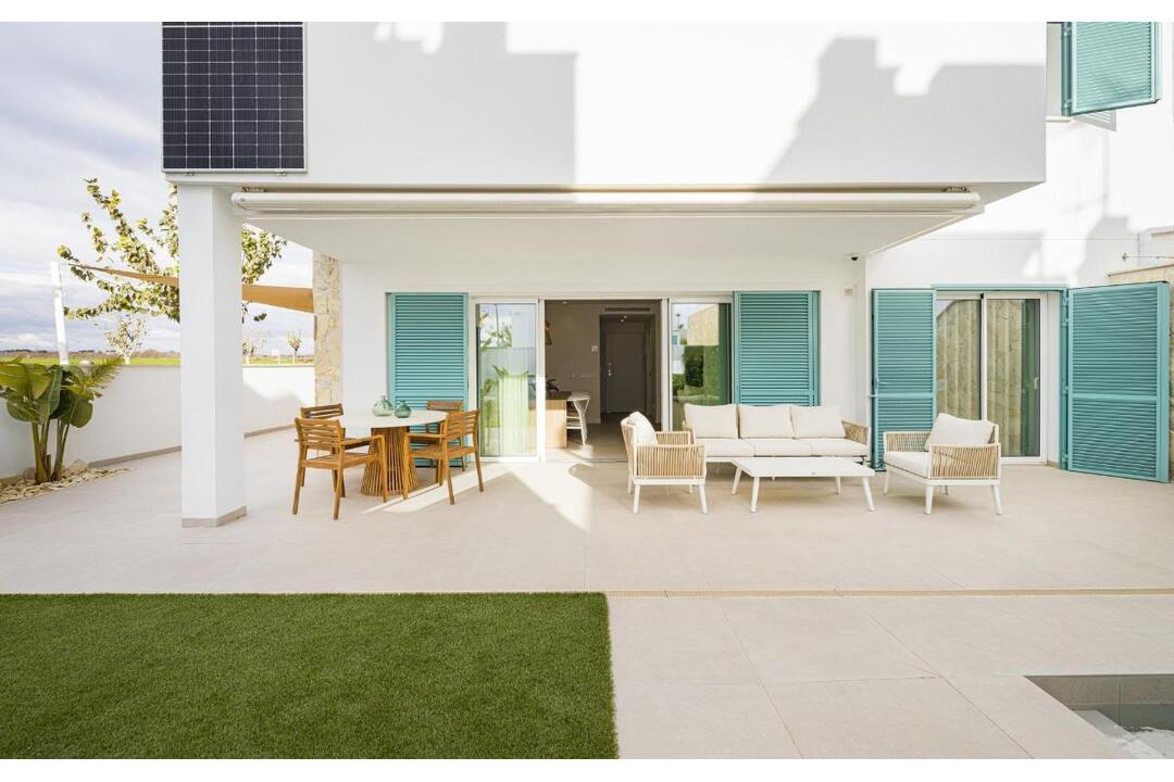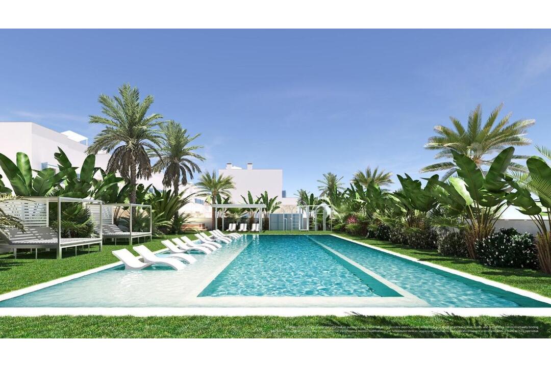 NEW BUILD RESIDENTIAL COMPLEX IN TORRE DE LA HORADADA New Build residential complex of bungalow apartments with communal pool in Torre de la Horadada located 800m from the beach. All properties has 2-3 bedrooms, 2 bathrooms, open plan kitchen with the lounge area, fitted wardrobes and terrace. All properties has private gardens and parking space. Plus bungalows on the top floor has private solarium. Torre de la Horadada is located south of Alicante in a beautiful location on the coast. The beautiful beaches of Torre de la Horadada and Mil Palmeras have fine sand beautiful promenade. There are lots of restaurants, bars and shops, also water sports, diving and snorkelling. It is well connected just 40 minutes from Alicante and Murcias Corvera airports, with large commercial shopping centres and multiple golf courses all within easy reach.