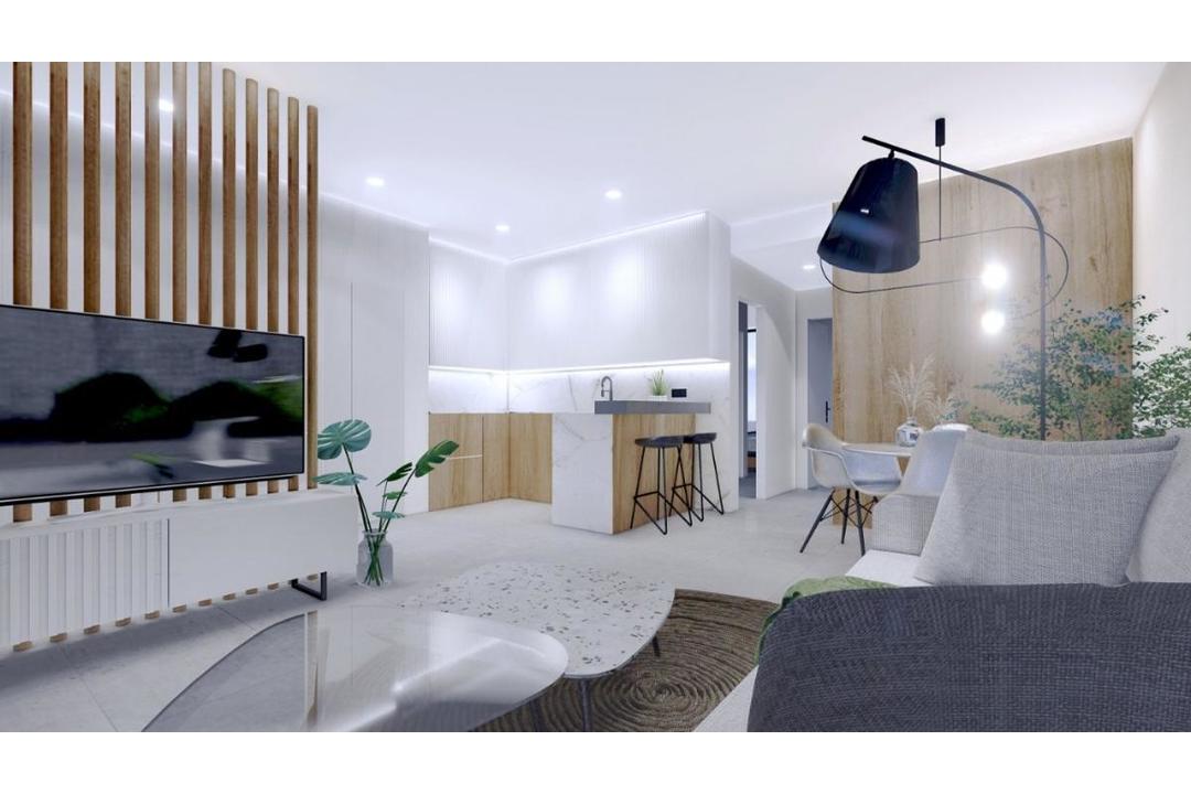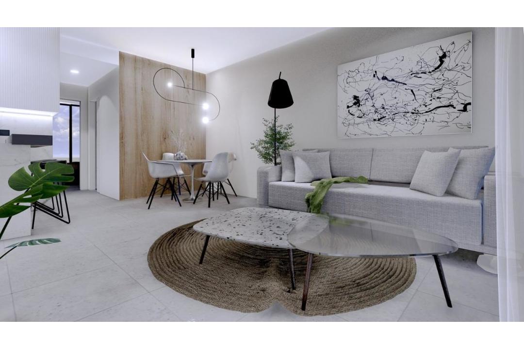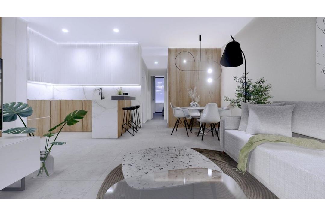 NEW BUILD RESIDENTIAL OF APARTMENTS IN LO PAGAN New Build residential complex of apartments on the ground floor with large front terrace and rear patio or penthouse with front terrace and large private rooftop solarium with pergola and summer kitchen, located just 350 metres from the beach. Garden / Ground Floor Home: The front door opens into the spacious living zone with dining area set to the side. The fully fitted kitchen is located next to the sliding doors allowing the natural sun light inside. To the side is a family bathroom with basin, toilet and shower and 2 generous sized bedrooms the master bedroom having en-suite bathroom. Penthouse Model: A staircase leads you to the top floor area with large tiled private terrace, with entrance door to the property. Like the ground floor models a generous open plan lounge/ dining area with the oversized kitchen 2 bedrooms to the side (master with en-suite). Access is gained to the private roof solarium from the rear of the kitchen. Turn Key: Our feature homes include all internal and external LED lighting, installed a/c machine, heated bathroom flooring in both bathrooms, fitted kitchen with induction hob, oven, dishwasher, full furniture package and underground garage parking. Optional storage rooms are available for an additional charge. All enjoying a large communal garden area with swimming pool. Located on the North edge of the Mar Menor, Lo Pagan has something to offer everyone. The beaches in Lo Pagan are some of the best to be found anywhere around the Mar Menor And are lined with some fantastic shops, restaurants, and Chringuito bars. To the other side of the bay, there is the popular Marina, with its fantastic restaurant and children's funfair which operates throughout the summer. The Marina is located close to the town center where you can explore the vast array of shops, churches, and further restaurants and bars on offer here, serving fantastic food and drinks late into the evening. There is also a wide range of watersports and activities available in Lo Pagan, from Jet Ski's, Boat Trips, Padel Boarding, Windsurfing, and more. In the summer months, there is also the inflatable assault course just off the shore to have fun with for children of all ages. The big appeal with areas such as Lo Pagan are its location for the Mar Menor, With its warm shallow waters its the perfect safe place for children to play all year round, and the high salt content also has great health benefits for everyone. Complex located 30 minutes from Murcia - Corvera airport and 1 hour Alicante airport.