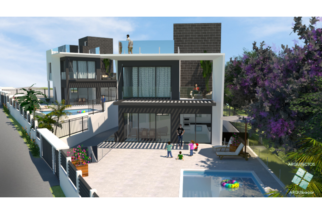 Three new villas with sea views and located just a short walk to Torres beach. On the ground floor there is a large open plan kitchen, dining, living room all leading onto the pool area with nice views. There is a double bedroom and guest bathroom. Upstairs there are a further two bedrooms and two bathrooms with the master bedroom having a walk -in wardrobe and en-suite bathroom.