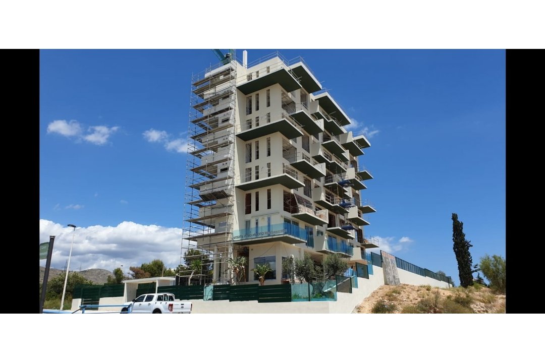 NEW BUILD APARTMENTS IN LA CALA DE FINESTRAT New Build residential of 21 apartment in La Cala de Finestrat. This apartments have 1 bedroom, 2 bathrooms, open plan lounge with kitchen and terrace. Residential consists of 8 floors and have communal garden with infinity pool plus hydromassage and recreational areas. Underground parking and storage room are optional at an extra cost. The construction will be carried out with top quality materials and a robotic energy saving system, in addition to other technologies such as remote door opening. The complex located 15 minutes walk from Poniente beach, 15 minutes from the "La Marina de Finestrat" shopping centre. Alicante airport is 44 km away.