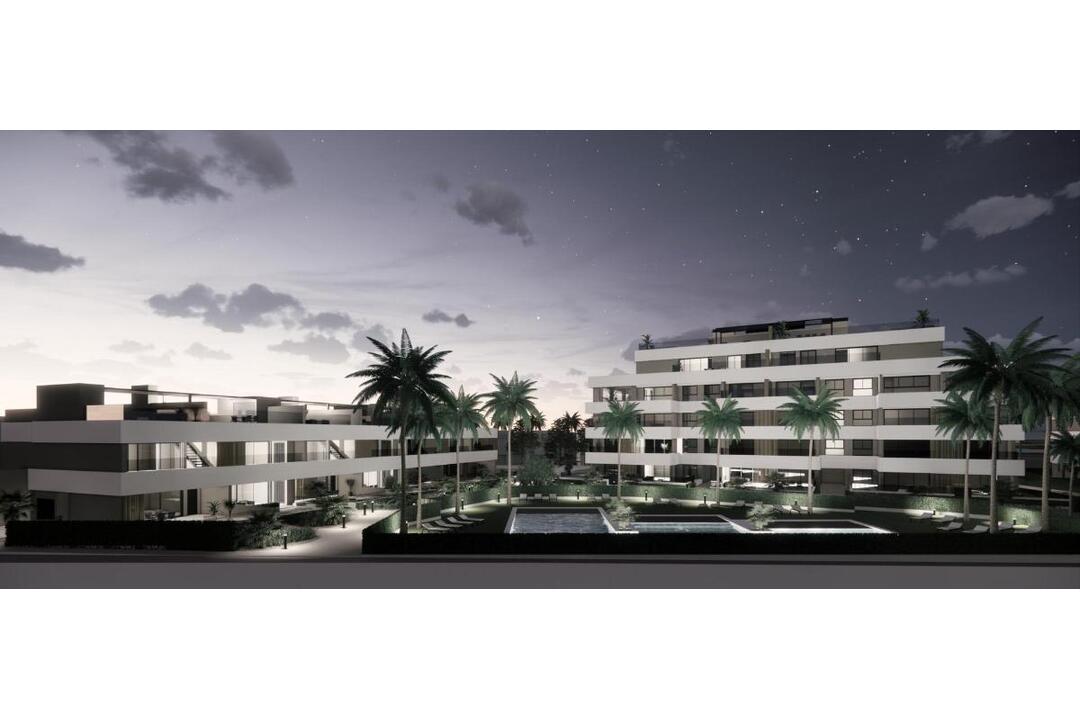 NEW BUILD RESIDENTIAL COMPLEX IN PRIVATE GATED RESORT IN PROVINCE OF MURCIA New Build residential complex of apartments and bungalows in private gated resort. Beautiful properties have 1, 2 and 3 bedrooms and 1 or 2 bathrooms, open plan kitchen with spacious living room, fitted wardrobes, terraces with views of the green areas of this large luxury resort. Ground floor bungalow with private garden, top floor bungalows with private solarium. Complex has a communal pool and all properties have a parking pace and a storage room. Located in a private gated resort, with a main access entrance and 24 hours security. The resort is designed around an impressive 126.000 m2 green area. It comprises walking and cycling paths, sport facilities, paddle and tennis courts, a mini-golf course, gardens, dog parks, leisure areas, clubhouse. Also in the central area is the jewel of the resort, a crystal-clear artificial lake of almost 17.000m2 of water surface, surrounded by white sandy beaches and palm trees, bringing a piece of the Caribbean to the Murcia Region. There are 2 islands in the lake, one of them has its own bar, there are also beach Chiringuitos spread around the lake. The resort is strategically located less than 4 km from the beach and the town of Los Alczares, where you can practice various water sports, surrounded by several golf courses and the city of Cartagena less than 15 minutes by car and 22 km from Murcia airport, therefore having a wide cultural, gastronomic and sports offer within reach.