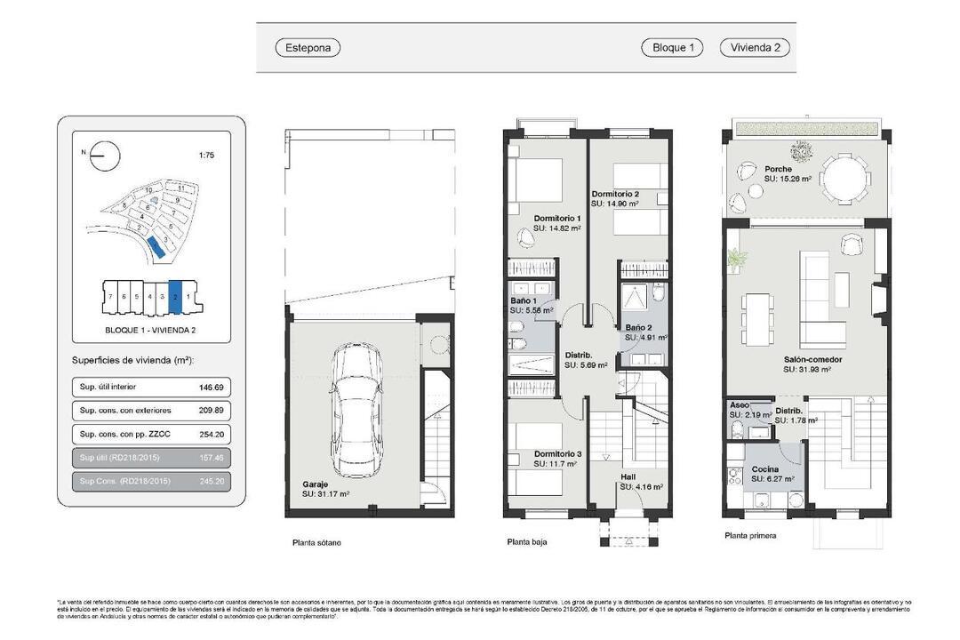 Modern Mediterranean Homes with Sea and Golf Views in Estepona, Costa del Sol Exclusive New Development in a Prime Location Discover an exceptional opportunity to live in the heart of the Costa del Sol, in one of the most promising residential areas of Estepona. This exclusive new development features 87 stylish townhouses and semi-detached villas, ideally located in the west of Estepona, next to the new High-Resolution Hospital and on the front line of Azata Golf, with Valle Romano Golf nearby. This vibrant neighborhood is quickly becoming one of the most prestigious and sought-after residential destinations in the region. Spacious Homes Designed for Modern Living The properties are distributed over two main floors plus a basement, and offer three bedrooms, two bathrooms, and a guest toilet. Each home includes large private terraces, and select units feature a rooftop solarium with stunning views of the sea and surrounding golf courses. Designed in a modern Mediterranean style, the homes boast: Bright and spacious interiors Marble flooring Double-glazed windows Electric blinds Whirlpool bathtubs for maximum comfort and relaxation Premium Communal Facilities The gated residential complex offers high-quality amenities to enhance your lifestyle: Indoor and outdoor swimming pools Spa and wellness area Fully equipped fitness room Landscaped gardens redesigned to offer peace, harmony, and well-being The entire development, including both interior and exterior spaces, is being fully renovated to meet high standards of elegance, functionality, and quality. Excellent Connectivity and Natural Surroundings Perfectly positioned just 2 km from the beach, the development enjoys easy access to key destinations along the Costa del Sol: Estepona town centre 5 km Marbella 30 km Sotogrande 35 km Malaga International Airport 85 km Gibraltar Airport 45 km Azata Golf Course adjacent Valle Romano Golf 1.5 km Estepona Port 6 km Surrounded by nature and close to all amenities, this is a location that offers both tranquillity and convenience, making it ideal for families, retirees, or investors looking for a profitable opportunity. Live Where Others Vacation Whether youre searching for a holiday home, a permanent residence, or a smart real estate investment, this project in Estepona offers the best of modern coastal living. Contact us today to arrange a visit and find your perfect home on the Costa del Sol.