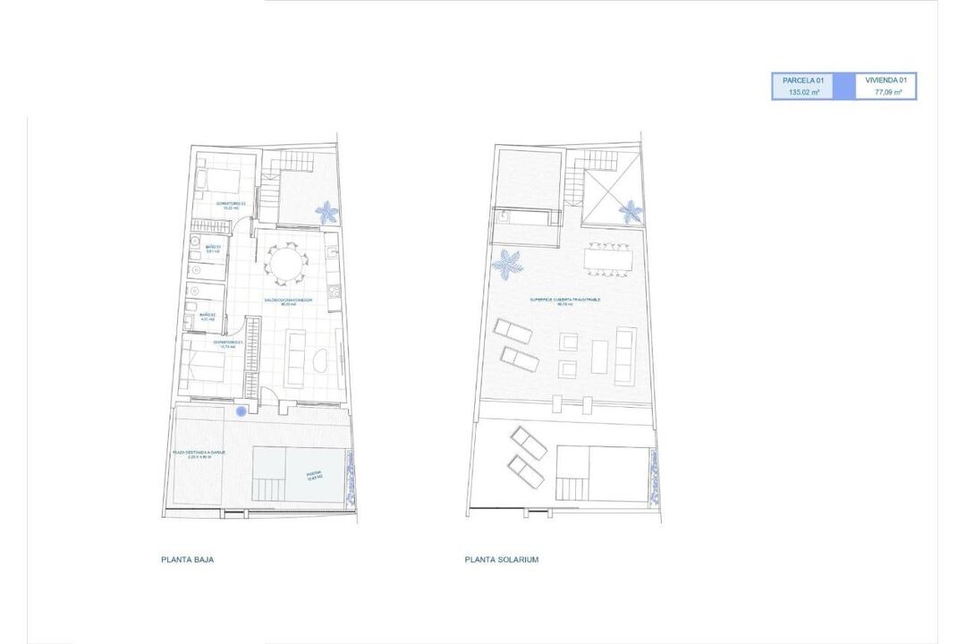 Modern New Build Townhouses with Private Pool in El Alba Resort Torre Pacheco Contemporary Homes in a Growing Mediterranean Resort Community This new build development consists of only 4 exclusive townhouses in the first phase, located in El Alba Mediterranean Resort in Torre Pacheco. Designed on one single level, these modern homes offer a perfect combination of comfort, functionality and Mediterranean outdoor living. El Alba Resort is an emerging residential area surrounded by open landscapes and golf courses, just a short distance from the town of Roldan where you will find supermarkets, restaurants, banks and daily services. The resort already features a social club with swimming pool and restaurant, and a commercial area is currently being developed, adding further convenience and value to the location. Single Level Living with Private Garden and Solarium Each property offers 2 bedrooms and 2 bathrooms, one of them ensuite, with an open plan kitchen connected to a bright living room. The layout is carefully designed to maximize natural light and create a seamless connection between indoor and outdoor spaces. All homes include: Fully equipped kitchen with appliances Bathrooms with furniture, mirror, lighting and shower screens Fitted wardrobes with drawers in bedrooms Pre installation of ducted air conditioning Interior and exterior LED lighting Three photovoltaic solar panels with 1.5 kW capacity per property The exterior areas are designed for year round enjoyment, featuring a private garden with swimming pool, a terrace and a large private solarium with a summer kitchen, ideal for outdoor dining and relaxing under the sun. Quality Features Designed for Comfort and Efficiency These homes are built with elegant and functional interiors, focusing on energy efficiency and modern living. A private parking space is located within the plot, ensuring convenience and security. The combination of solar panels, quality insulation and smart design provides an energy efficient home ideal for permanent living, holiday use or rental investment. Excellent Location Near Golf Courses, Beaches and Airports Roldan town center 2 km Mar Menor beaches 15 km Mediterranean Sea beaches 20 km La Torre Golf Resort 5 km Terrazas de la Torre Golf 6 km Murcia Corvera Airport 18 km Cartagena city 30 km This strategic location allows easy access to golf, beaches, services and transport connections while enjoying a peaceful residential environment. A Smart Investment in the Costa Calida These townhouses in El Alba Mediterranean Resort offer an excellent opportunity to own a modern property with private pool in a fast growing area of Torre Pacheco. Contact us today to receive more information or to arrange a visit to these exclusive new build homes.