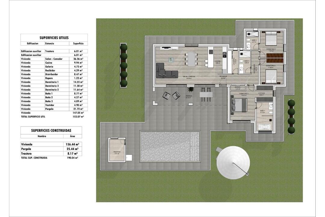 Newly built villas located in the municipality of Aspe. Newly built villas with several models to choose from, with 2, 3 or 4 bedrooms, on one or two floors and built with slabs or with a structure: depending on the model and the plot chosen, the exact price will be calculated. All the villas are built on rustic plots of over 10,000 m2, of which around 2,500 m2 will be fenced off. The villas have an open-plan kitchen with living room, built-in wardrobes, private swimming pool, porch, storage room and outdoor parking space. There are several plots to choose from. The price is based on a plot priced at 75 000 (if another plot is chosen, the difference will be paid or credited according to the price of the plot). Self-build project, delivery in approximately 12 months from the granting of the licence. If you are looking for a quiet environment, close to typical Spanish villages away from tourist crowds, surrounded by mountains, with a very large plot and about 30 minutes from the sea, this is your home. Aspe is a typical Spanish village with all the amenities for everyday life, surrounded by mountains and with several natural areas nearby where you can go hiking or mountain biking. Located 25 km from the beach, 9 km from Elche and about 20 km from Alicante airport.