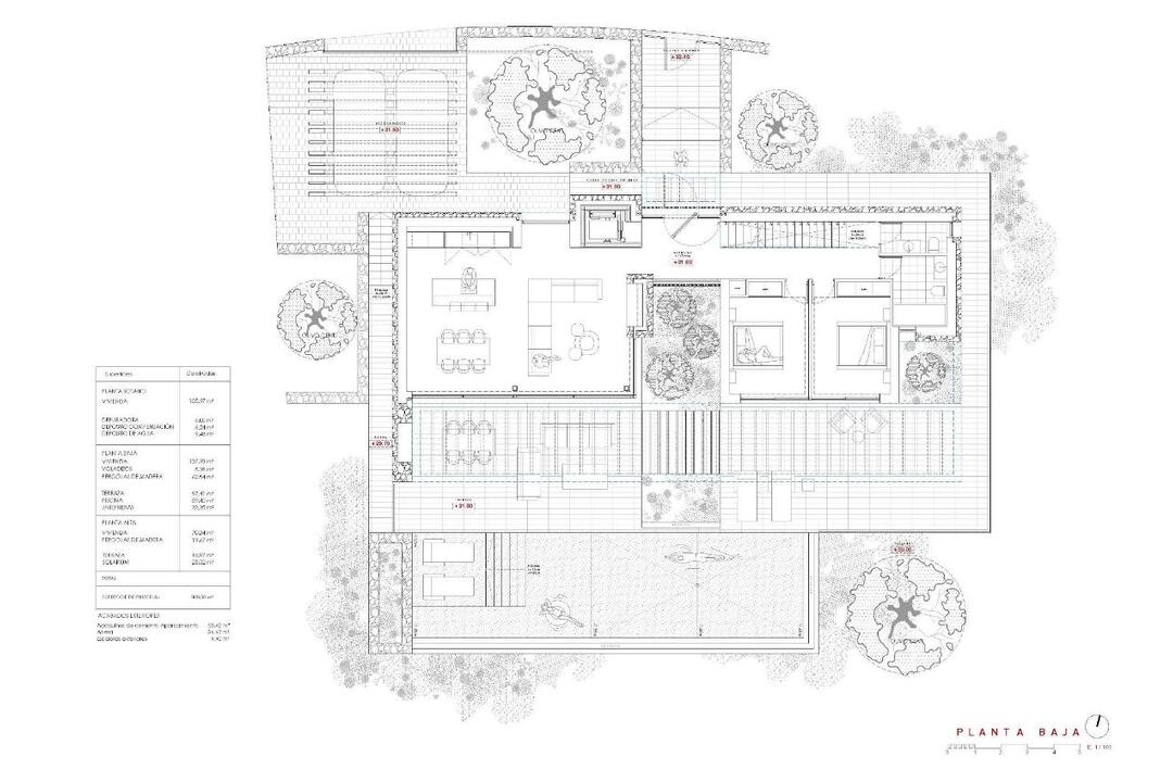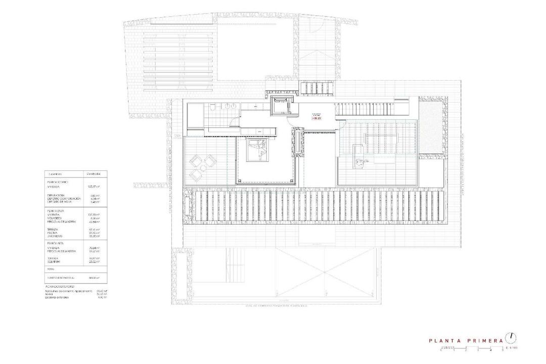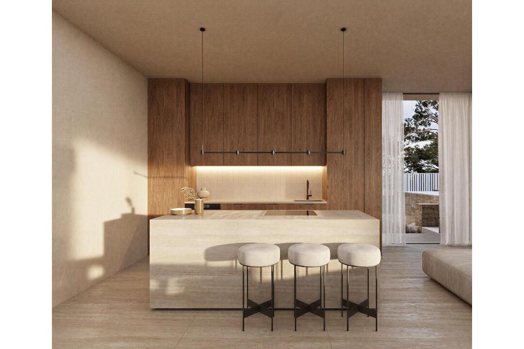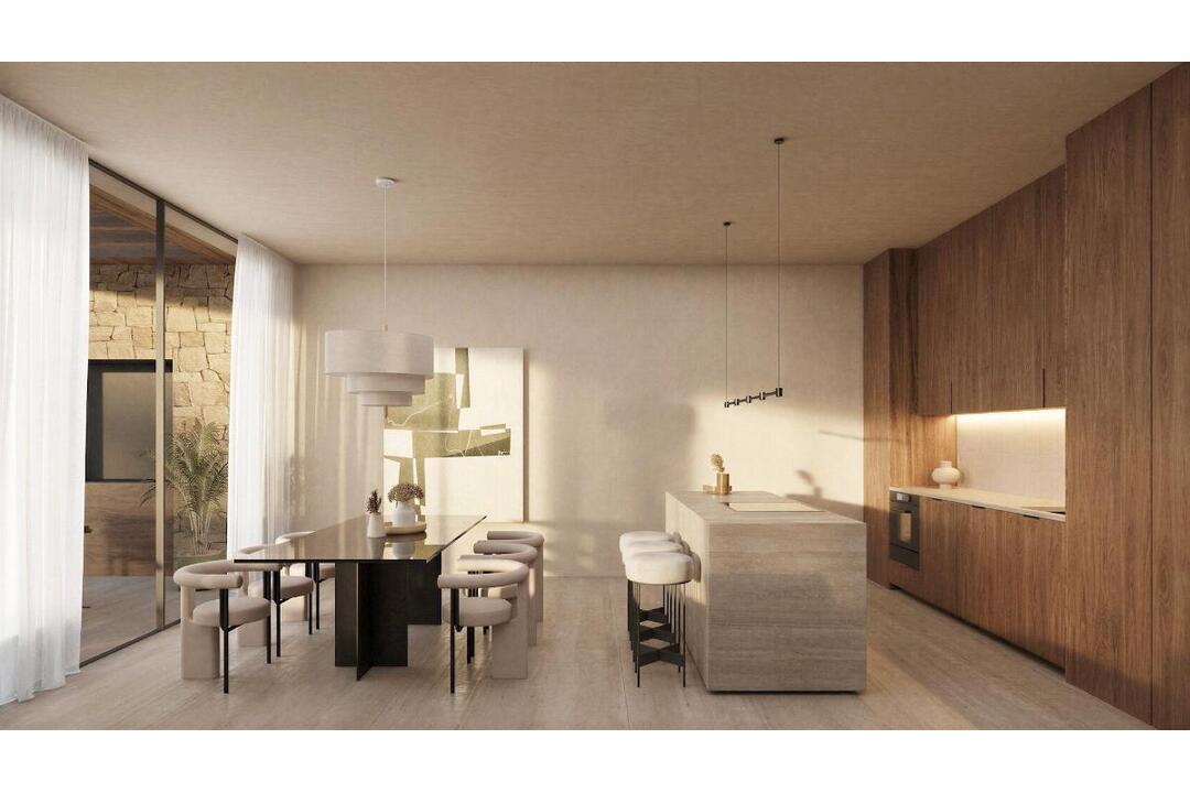 Contemporary Villa with Panoramic Sea Views in La Fustera, Benissa Costa This exclusive new-build villa, designed by a renowned architect and developed by a local developer with more than 20 years experience, sits on an 800 m plot just a few steps from La Fustera Beach. Blending Mediterranean warmth with contemporary elegance, the architecture combines natural stone, wood, and soft neutral tones, integrating seamlessly with the coastal landscape. With a total built area of 716 m distributed over three levels - basement, ground floor, and first floor - the villa offers a perfect balance between functionality, design, and comfort. Basement Level The lower floor of 105.97 m is designed for both practicality and leisure. It includes a fully equipped gym, laundry room, and technical areas, with the option to adapt additional spaces as a wine cellar, cinema, or multipurpose room. This level also houses the pools filtration system and water tanks, ensuring efficient management of all technical installations. Ground Floor The main level, with 137.93 m, unfolds in a bright open-plan layout that captures the essence of Mediterranean living. The spacious living room, dining area, and kitchen open through large floorto-ceiling windows onto the main terrace and infinity pool, framing incredible panoramic sea views that define the character of this home. Two double bedrooms, a full bathroom, and a guest toilet complete this floor, providing comfort and functionality. Outside, a wooden pergola shades the outdoor lounge and dining areas, surrounded by lush gardens, sun terraces, and a 59.40 m infinity pool that visually merges with the sea. First Floor The upper level, with 70.19 m, is reserved for the master suite - a private retreat featuring a walk-in closet, en-suite bathroom, and a large private terrace with breathtaking views of the Mediterranean Sea. A second bedroom or office space completes this floor, which also provides access to a 25.02 m solarium, ideal for relaxing under the sun and enjoying the serenity of the surroundings. Exterior and Location Located on a quiet residential street surrounded by modern villas, this property enjoys an exceptional position just a 3-minute walk from La Fustera Beach (150m), the Mandala Beach Bar and Restaurant, and essential amenities such as supermarkets and local services. Designed with an emphasis on light, space, and seamless indoor-outdoor living, this villa embodies the modern Mediterranean lifestyle - elegant, relaxed, and in perfect harmony with its spectacular panoramic sea views. Secure your dream villa in La Fustera, Benissa Costa, and embrace the ultimate Mediterranean lifestyle with breathtaking sea views and unmatched comfort.