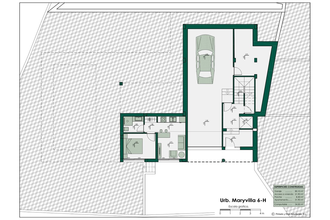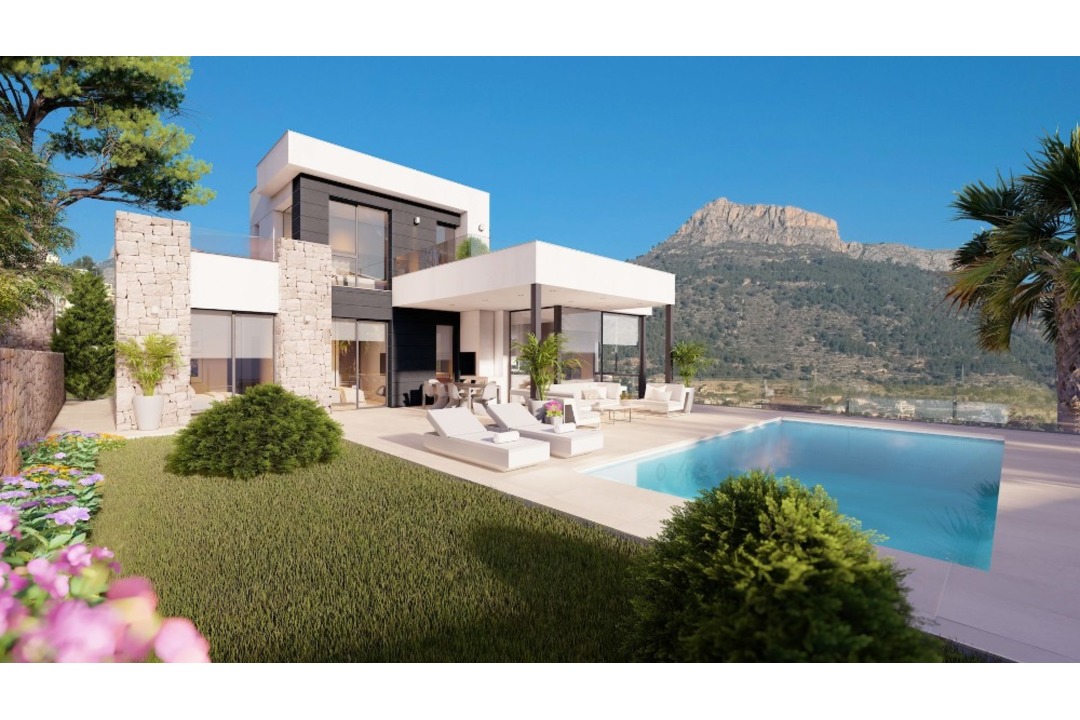 A modern villa finished to a very high standard located in Maryvilla, Calpe, selected by location, orientation and views of the sea, in which the villa has been designed specifically to adapt to this plot with exclusive design, its own character, integrated into their surroundings and designed to enjoy the sea views and the Mediterranean climate. The villa has been constructed over three floors. On the ground floor the entrance has pre installation for an elevator. There is also the possibility of expansion for a garage for two cars, storage room and an apartment with one bedroom, kitchen-living room and a bathroom. On the main floor, from the entrance there is access to the hall, where you will find in front and on the left side the daily area, where the kitchen completely opens to the dining room and living room, and direct access to the terrace. There is an exit to the barbecue directly from the kitchen. On the right there are 2 bedrooms. The master room has an individual bathroom with dressing room and the adjacent bedroom has a bathroom. On the second floor there is another master room with an individual bathroom with dressing room and a private terrace with fantastic sea views. On the terrace, we find the pool with a relaxing area to enjoy the sun or a dinner at the barbecue.