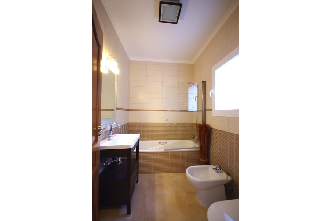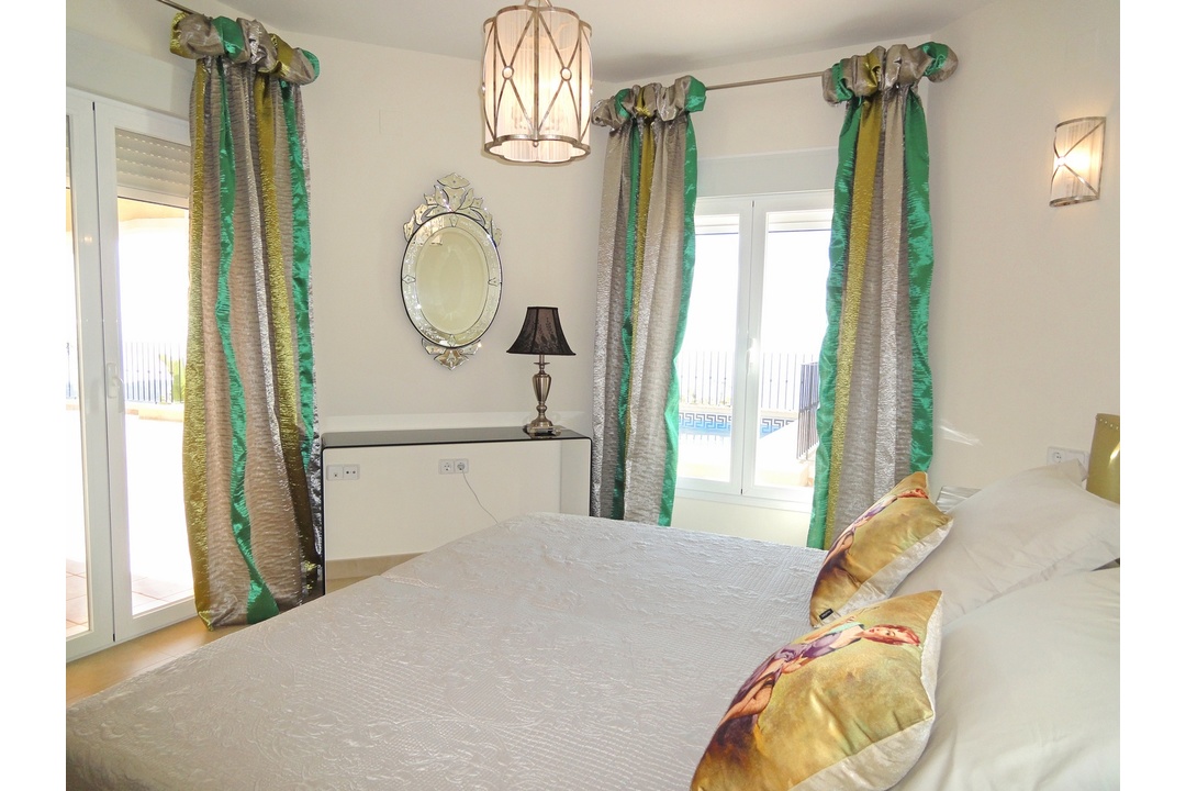The villa is a neoclassic design on two floors, with 3 bedrooms and 4 bathrooms. The upper floor houses the master bedroom with dressing room and en-suite bathroom with corner bath and hydro massage shower, a second bedroom with a large wardrobe and separate bathroom, the dining room, a fully equipped kitchen with access to the barbecue area. Completing this floor is a large lounge with fireplace and direct access to a veranda with magnificent sea views. On the ground floor there is a third bedroom also with an en-suite bathroom, an additional bathroom with shower, a fitness room with an area destined for a sauna, the utility room, the engine room and a spacious living room with access to the covered terrace area and the swimming pool with an outside shower and a spacious terrace with a metallic railing that does not obstruct the marvelous panoramic sea views. The villa comes with furniture included.
