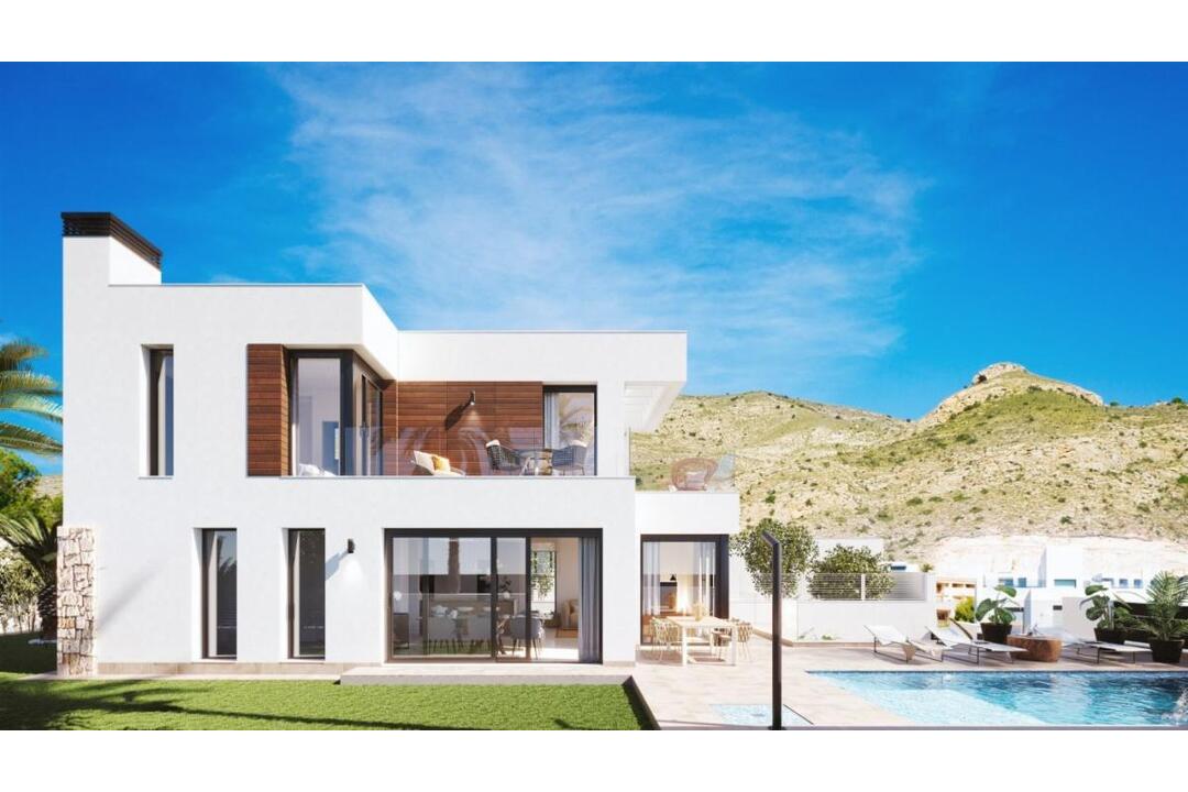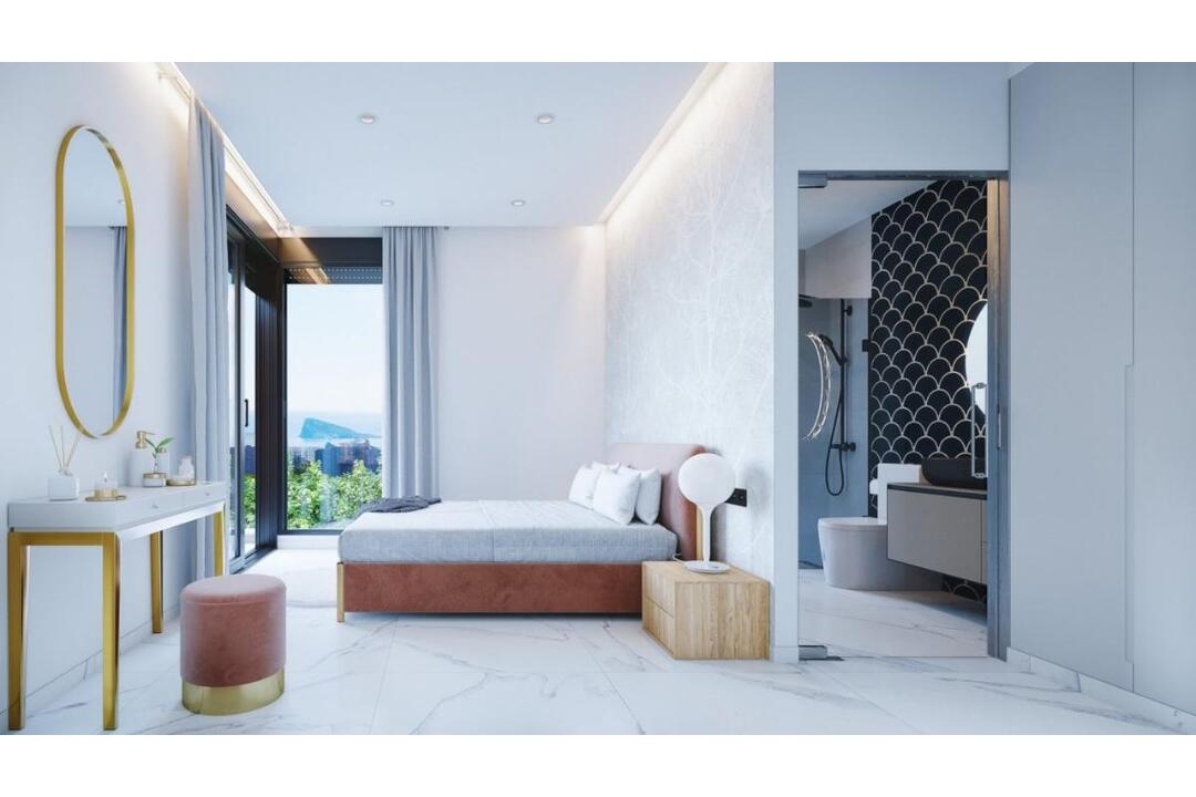 New build luxury villas made up of 11 independent villas in Finestrat, Costa Blanca. Located in Sierra Cortina, a quiet area surrounded by open countryside, with distant views of the mountains and the Mediterranean Sea. The complex is close to golf courses, marinas, luxury hotels, spa and services. Benidorm and its wonderful beaches are only 5 minutes away by car. Each property has 3 bedrooms and 3 full baths. Designed with an open plan concept, comprising a fully equipped kitchen, living room and dining room. The houses are built on plots ranging from 385 M2 to 540 M2. The large terraces and private gardens that surround each property allow the sun to enter every day of the year. Each villa has its own private pool, closed garage and basement. Included in the price: Fully equipped kitchen, with fridge and freezer, integrated dishwasher, island induction hobs, built-in extractor hood, raised oven and microwave. Lined cupboards with drawers, Complete bathrooms: vanity unit, mirror, shower screens and underfloor heating. Laundry room with washing machine in the basement. Parking space in the basement. Additional features: Waterfall and jacuzzi in pool. Spotlights inside the villa and lights in outdoor areas. Air conditioner. Electric blinds and home automation (Smart House).