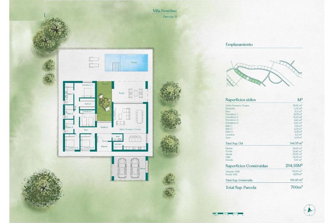 Exclusive golf frontline villas in Hacienda del lamo, Costa Clida Modern villas in one of Spain's finest golf resorts Discover a unique opportunity to acquire a newly built luxury villa on the front line of the Hacienda del lamo Golf Resort, located between the historic cities of Cartagena and Murcia, in the heart of the Costa Clida. These contemporary villas are designed to offer comfort, privacy and elegance, and are located in an exceptional setting dedicated to golf and leisure. Each property offers a spacious layout with 4 bedrooms, 3 bathrooms and a guest toilet, in a single-storey design. With generous plots of around 700 square metres and a built area of 214 square metres, these homes offer ample space for indoor and outdoor living. High-quality features and finishes These golf frontline villas are equipped with all modern amenities to ensure maximum comfort and style, including: Private swimming pool and landscaped garden with drip irrigation system Fully equipped kitchen with fitted cupboards and appliances included Ducted air conditioning throughout the property Bathrooms with furniture, mirrors and shower screens Aluminium windows with thermal break and double glazing Access to a large communal swimming pool with natural grass and children's play area Luxury living at Hacienda del lamo Golf Resort Hacienda del lamo is renowned as one of Spain's finest golf resorts, offering residents a relaxed, sporty and comfortable lifestyle. 18-hole golf course and academy Sports facilities including tennis, paddle tennis, gym and fitness classes Main clubhouse with panoramic views, a Mediterranean restaurant and sunny terraces 4-star hotel and spa for relaxation and well-being Spaces for the whole family, with children's play areas, swimming pools and bike lanes. Traditional Spanish village with shops, cafs and new restaurants opening soon. Strategic location with excellent connections Corvera Airport (Murcia): 18 km (approx. 15 minutes) Cartagena: 36 km Murcia city centre: 40 km Mar Menor beaches: 28 km Shopping centres (Dos Mares, Espacio Mediterrneo): less than 30 km Your dream home next to the golf course awaits you Whether you are looking for a permanent residence, a holiday retreat or a smart investment on the Costa Clida, these golf frontline villas in Hacienda del lamo are the perfect choice. Contact us today for more information or to arrange a personalised viewing.
