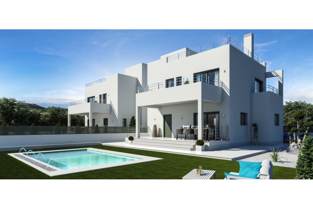 Exclusive residential development of 3 and 4 bedroom villas. Available in two versions: on semi-detached houses of 255m2, or townhouse of 280 m2. Inside the plot of each house there will be space for car parking and individual pool. All homes have two floors, plus the upper floor with solarium, which has incredible views of the sea and the bay of Santa Pola. In these homes the qualities of finishes and materials shine through to offer maximum comfort, designed as such to enjoy your home, with the magic of living next to an impressive natural park. This residential properties will have the best energy ratings, as well as significant economic and energy savings. Live in a unique enclave just 500 metres from the beach Playa del Pinet and next to Las Salinas Natural Park. An idyllic place to live surrounded by nature, without forgetting the proximity to all services and shops. Halfway between Elche, with its World Heritage awards of Humanity, and Santa Pola, with its beautiful salt landscape and the Island of Tabarca.