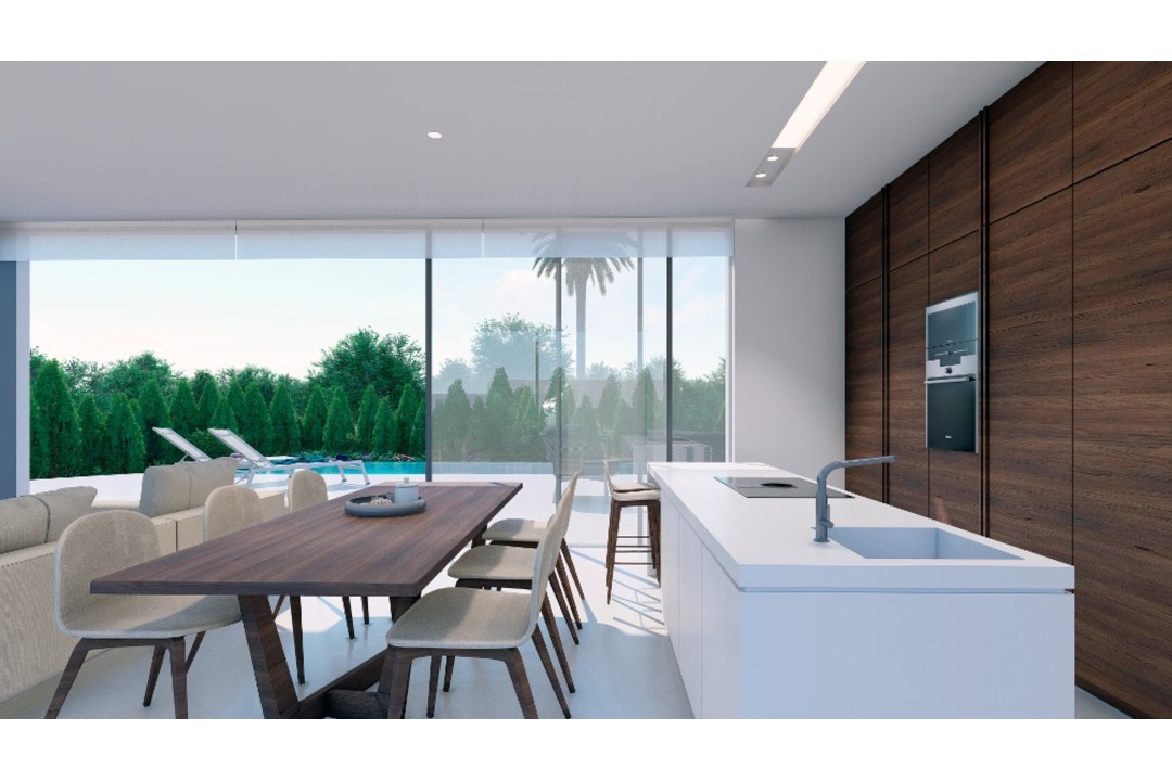 An attractive villa constructed with the very best qualities located in the award winning Las Colinas Golf and Country Club. There are 3 doubles bedrooms and the fully equipped kitchen has SIEMENS electrical appliances, Porcelain DEKTON or similar counter tops. Installation of domotic, with air-conditioning and room heating, lighting control, shutters, technical alarms and intrusion alarms. Also smoke gas and drowning detection system, heating with heat pump (cold-warm) and distribution through pipes with Airzone system and underfloor heating throughout the villa. In the garage you will find a utility room, parking for two cars and charger for electric car. The garden comes finished in Japanese style combined with grass and native trees along with a terraces and a large pool. Upstairs there is a 113m2 solarium.