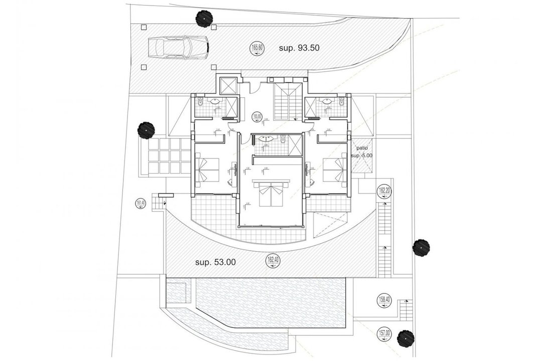 A brand new, modern villa in construction to be finished to very high specification with panoramic sea and mountain views. The villa has three floors serviced with a lift. There will be four bedrooms all with en- suite bathrooms and two guests toilets. There is under floor heating and a sauna along with the latest in-house technology controlling heating lighting security etc.