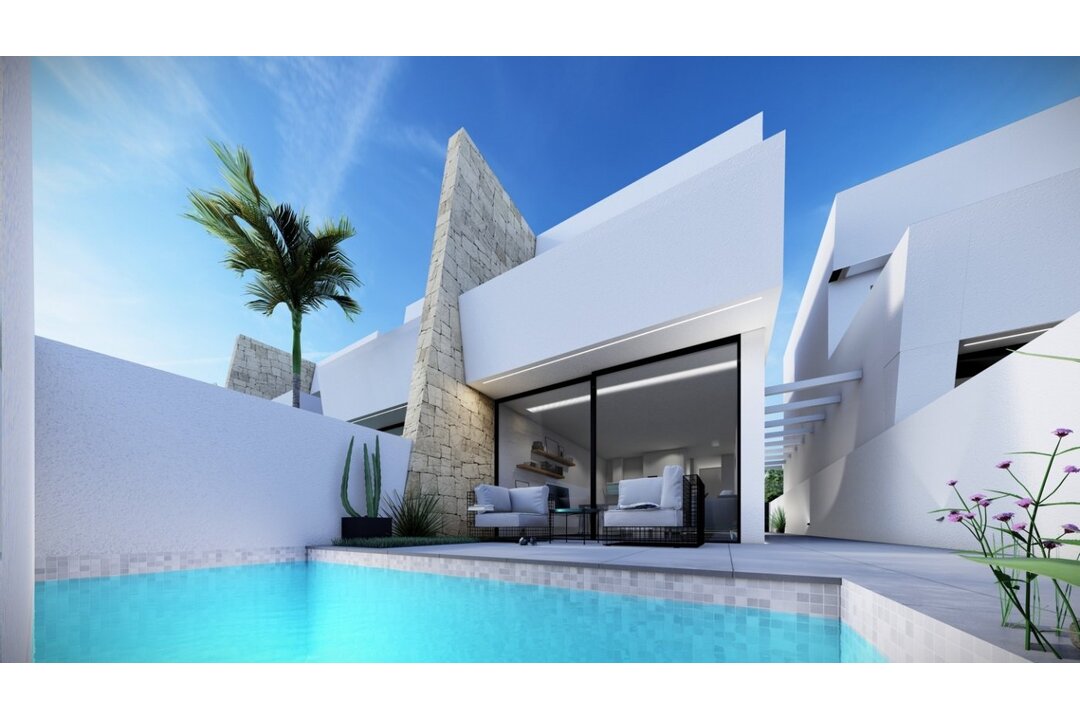 NEW BUILD SEMI DETACHED VILLAS IN SANTIAGO DE LA RIBERA New Build residential of detached and semi detached villas with private pools in Santiago de la Ribera (650 metres from the beaches) Properties designed to provide the very best open plan living space, featuring double full glass sliding doors that open directly on to a large terrace with private swimming pool, terrace and parking area. Villas offer 3 generously sized bedrooms (first floor with en-suite), and a further bathroom on the ground floor with walk in shower. The ground floor living area features a fully fitted kitchen with drop down table open plan lounge / dining area, fully fitted kitchen zone with appliances, exterior storage room and terraced areas to the side of the villa, from master bedroom and from the lounge area. The villas are perfectly situated as they are walking distance to Dos Mares shopping centre and many other shops, bars, restaurants and the beautiful beaches of the Mar Menor. The Wednesday and Saturday street market is just 150 metres away. Only 20 minutes to the popular Zenia Boulevard, 30 minutes from Cartagena city. This area offers a variety of sports activities, including seasonal water sports With some particularly good golf courses very close by! Santiago de la Ribera is a coastal town administratively dependent on the municipality of San Javier. It has 4 km of beach that are a great attraction for tourists from different origins. Murcia/Corvera airport is 30 minutes away and Alicante airport is an hour drive away.