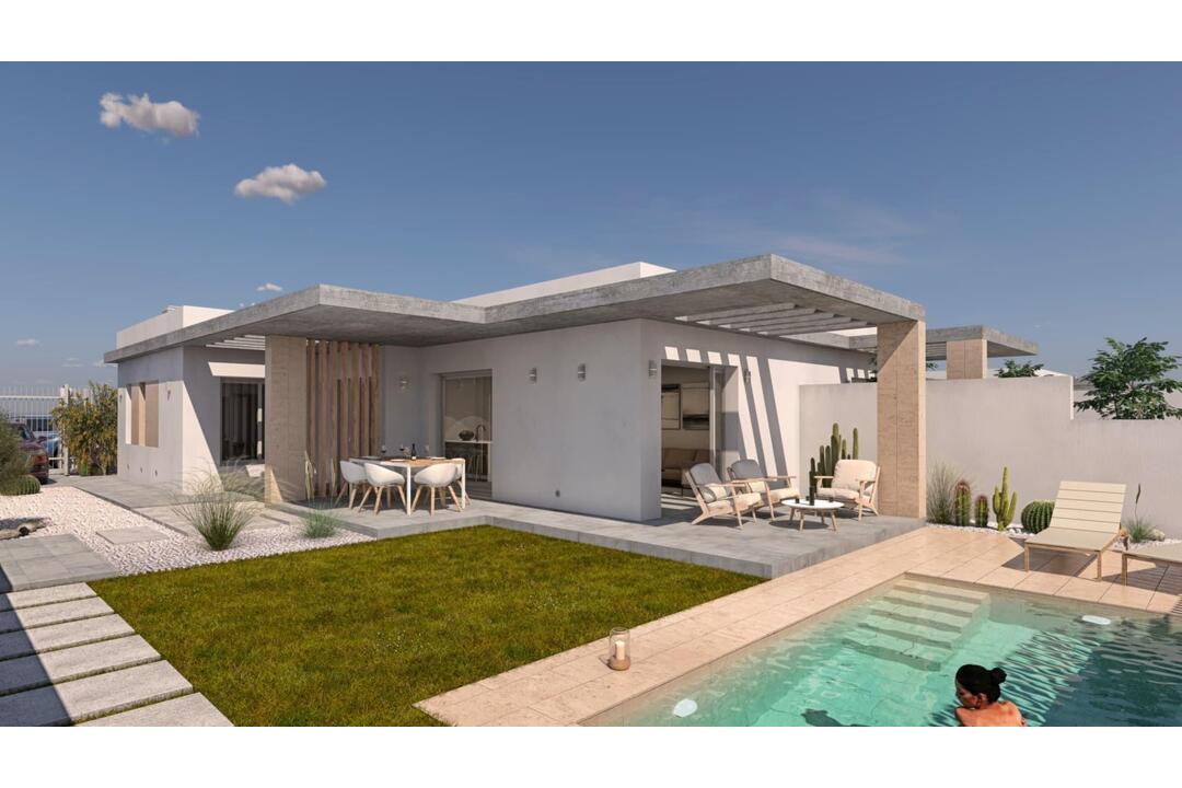 NEW BUILD SEMI-DATACHED VILLAS IN SANTIAGO DE LA RIBERA New Build development of modern semi-detached villas in Santiag de la Ribera. Villas build on the plots from 300 m2 and comprising of 3 bedrooms and 2 bathrooms, distributed over a single floor, with large porches, garden and private swimming pool. The main living area has an open plan living-dining room and kitchen with large windows that give access to the outside area. This floor is completed with an en suite bedroom, two bedrooms with direct access to the garden, bathroom and laundry room. Each space invites to a unique experience due to its composition, finishes and lighting. The contemporary and avant-garde style shares with minimalism the pure and straight lines and the wide, clean and diaphanous spaces, adding a welcoming atmosphere. Villas with spacious, modern and versatile spaces, as well as the most exquisite selection of materials and finishes and their energy efficiency, are just some of the exceptional features that allow you to enjoy the wonderful Mediterranean climate all year round. Santiago has a modern feel, although it still maintains its fishing village atmosphere. It has a very beautiful promenade, which is lined by majestic palm trees and 2 kilometres of wonderful sandy beaches. From here you can take a boat trip out across the calm waters of the Mar Menor, to the La Manga Strip on the opposite side. The main shopping area is really in the town of San Javier, but there are some some shops in the narrow streets to browse, try visiting on a Wednesday morning when there is a large street market. The villas are walking distance to shops, bars, restaurants, Dos Mares shopping centre and the fantastic beaches of the Mar Menor and 20 minutes to the popular Zenia Boulevard - everything is within easy reach! Just 30 minutes from Cartagena city and the new International Murcia airport.